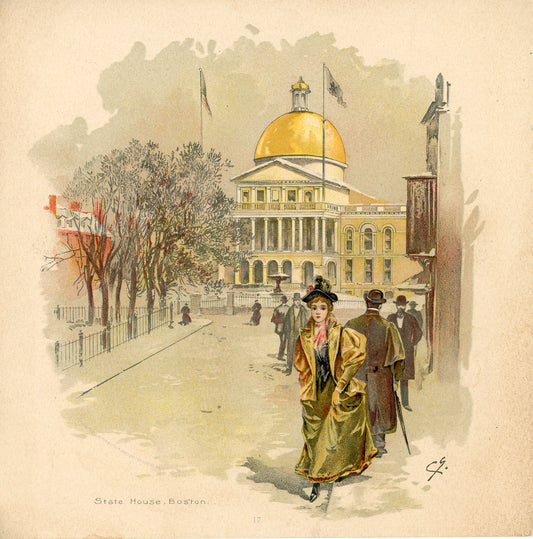 Boston Scenes by Charles Graham LITHOGRAPH PRINTS Set of Two (2)