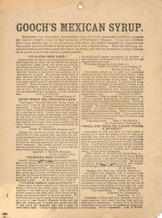 Gooch's Mexican Syrup ANTIQUE ADVERTISING CALENDAR Circa 1901