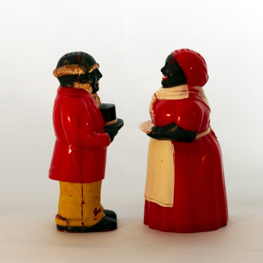Molded Plastic AUNT JEMIMA & MOSE SHAKERS 5” High Black Americana Circa 1940s