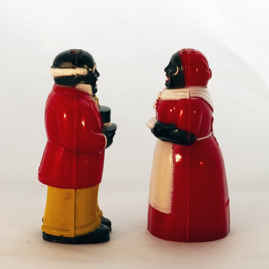 Molded Plastic AUNT JEMIMA & MOSE SHAKERS 3 ½” Black Americana Circa 1940s (B)