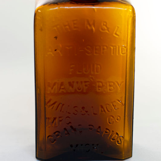 M & L ANTI-SEPTIC Fluid Bottle for Embalming by Mills & Lacey Circa 1880s
