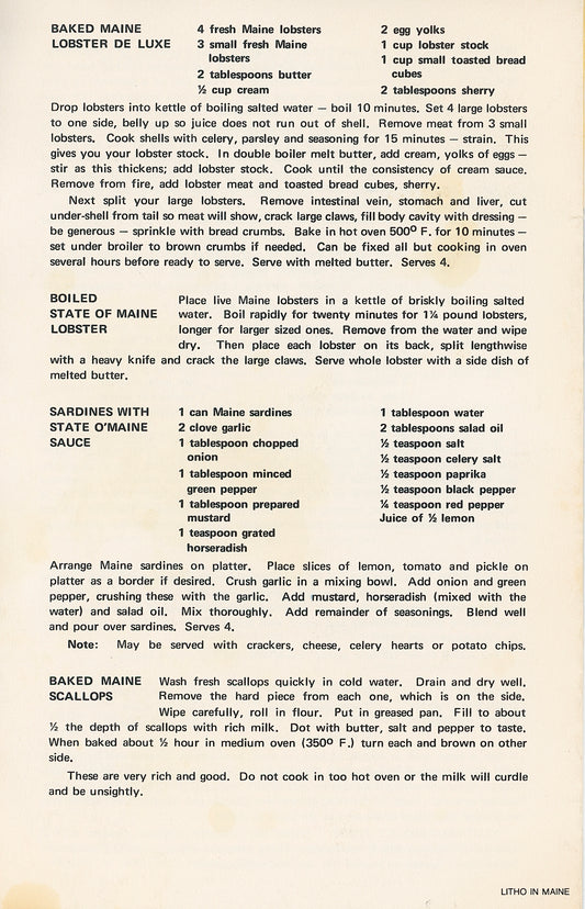 SEAFOOD DISHES FROM MAINE Recipe Pamphlet Circa 1960 to 1976