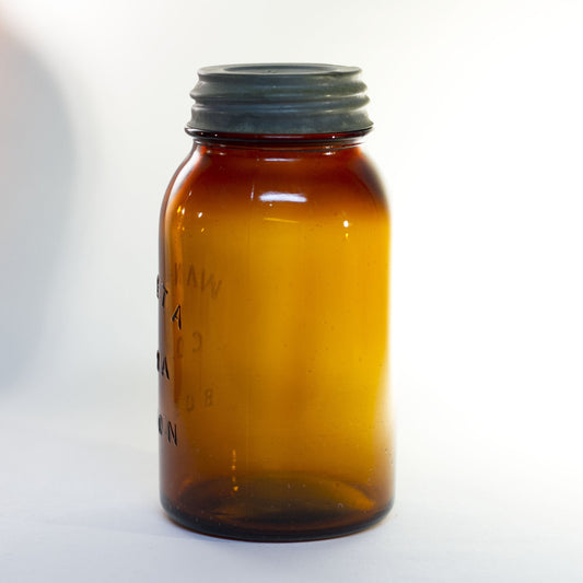 WAN-ETA COCOA Amber Glass Quart-Size Mason Jar Circa 1920 to 1930