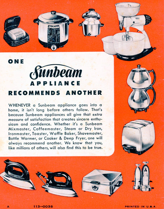 SUNBEAM MIXMASTER JUNIOR Recipe Book and Instructions ©1952