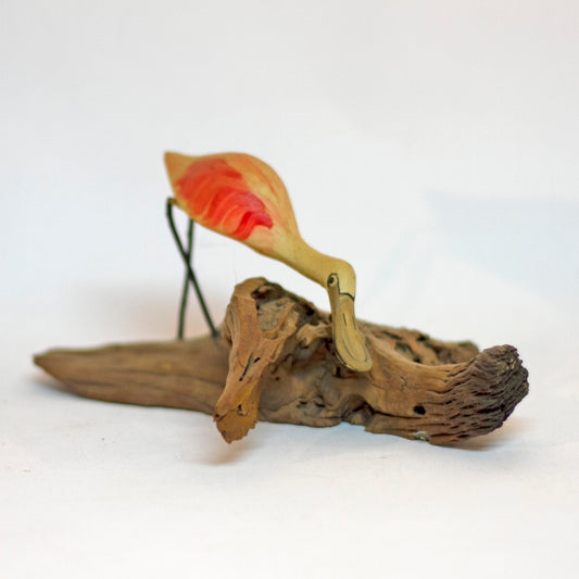 Hand Painted & Carved ROSEATE SPOONBILL SHOREBIRD WOOD SCULPTURE Circa 1980s