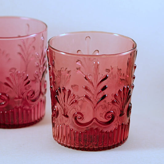PILGRIM CRANBERRY GLASS Adams Pattern Old Fashioned Glasses Set of Two (2) Early Vintage Pattern