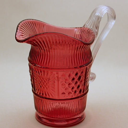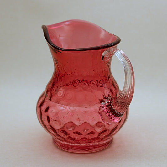 FENTON CRANBERRY GLASS Cream Pitcher in Ruby Overlay & Polka Dot Pattern Circa 1950s