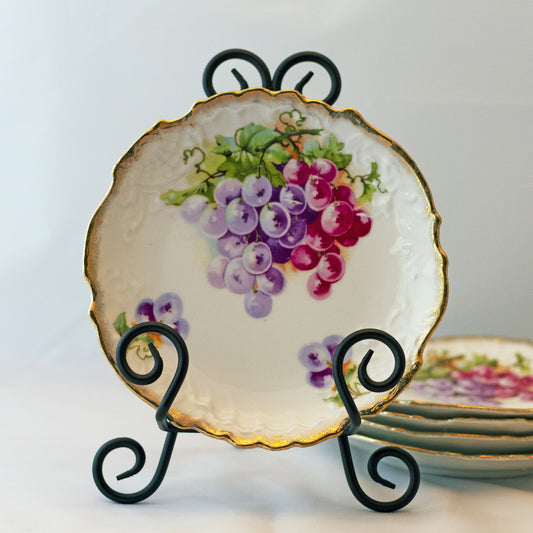 GRAPE CLUSTER Decorated Vintage Dessert Plates Marked Germany (Set of 6)