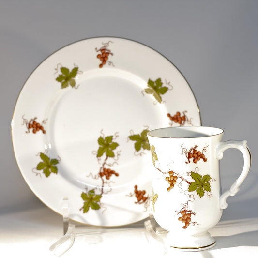 FINE BONE CHINA 2-Piece Snack Set in Grapevine Pattern
