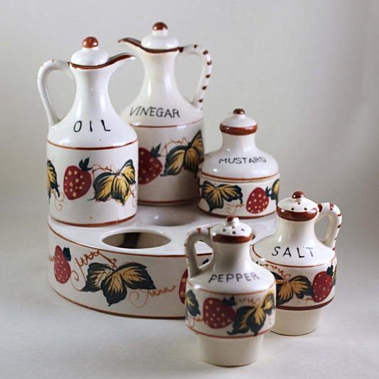 CERAMIC CRUET SET Decorated With Strawberries Made in Japan Circa 1950s