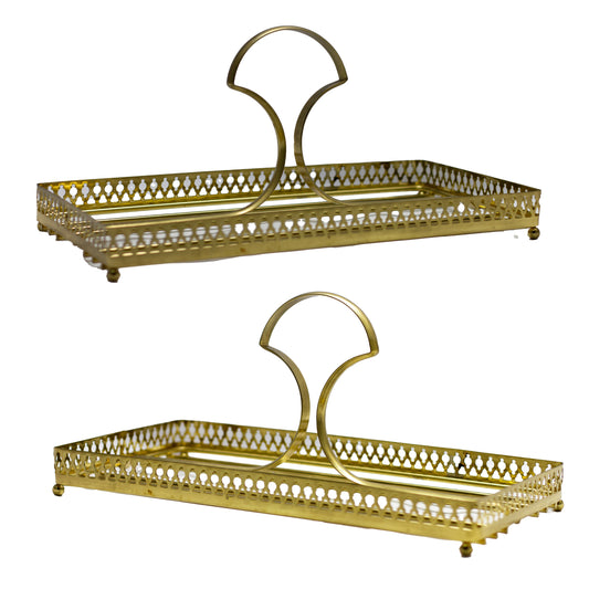 Mid-Century Divided Brass Bar Tray with Handle & Ball Feet