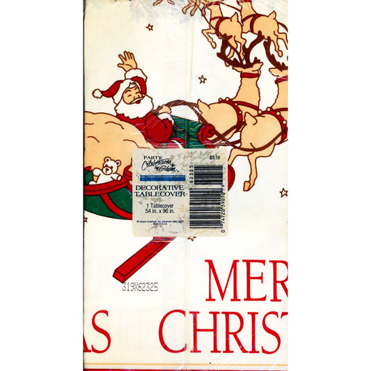 Vintage CHRISTMAS SANTA CLAUS in Sleigh Paper Table Cover Party Celebrations by Gibson 54" x 96"