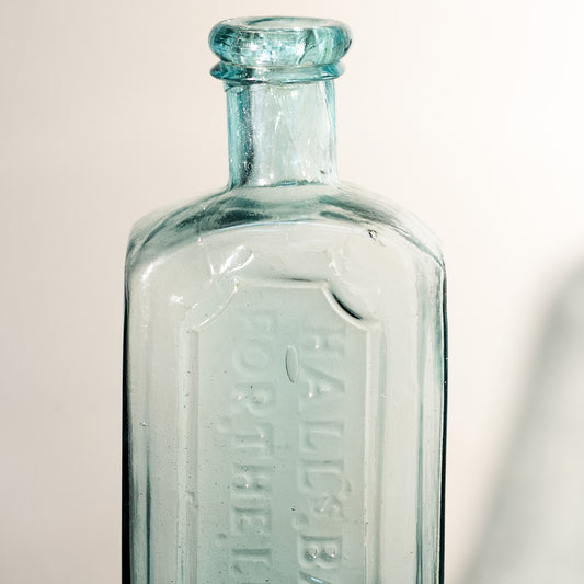 Early HALL'S BALSAM FOR THE LUNGS Aqua Glass Bottle Circa 1860 - 1870