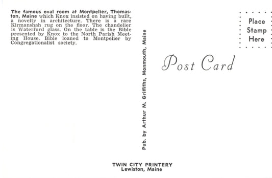 Montpelier Knox Mansion Oval Room THOMASTON MAINE Vintage Postcard ©1970's