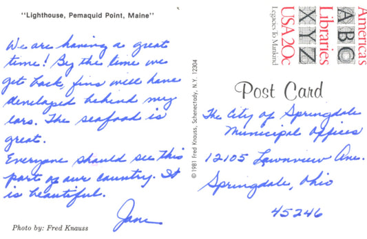 Lighthouse at PEMAQUID POINT MAINE Vintage Postcard ©1970's