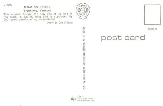 Floating Bridge BROOKFIELD VERMONT Vintage Postcard Deckle Edge
