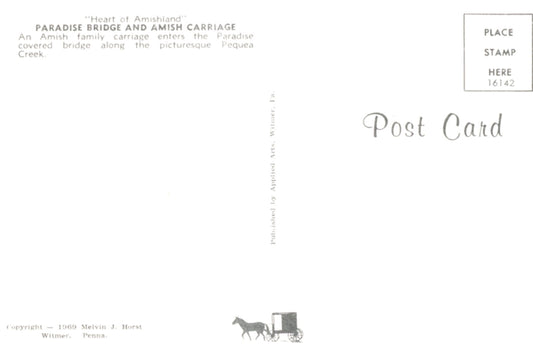 Paradise Covered Bridge and Amish Carriage LANCASTER COUNTY PENNSYLVANIA Vintage Postcard