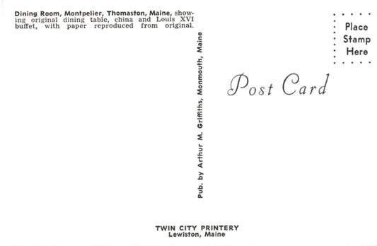 Montpelier Knox Mansion Dining Room THOMASTON MAINE Vintage Postcard ©1970's