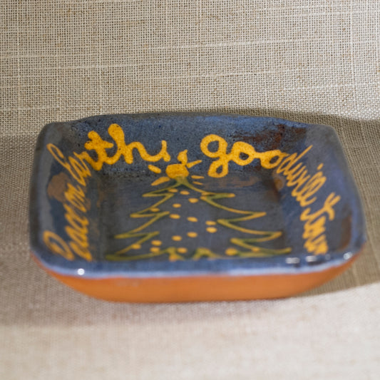 TURTLECREEK POTTERY REDWARE Peace on Earth with Christmas Tree Dish Signed Mary Circa 1985
