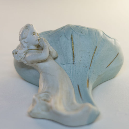 Porcelain PRAYING ANGEL Kneeling in Meditation Antique Figurine Damaged