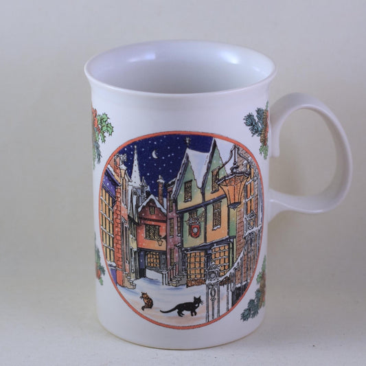 SUE SCULLARD Bone China Mug Winter Village Scene with Tabby Cat Circa 1990sVendor:Dunoon Made in ScotlandRegular price $14.00 USDRegular priceUnit price / per-