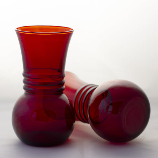 Mid Century ROYAL RUBY by Anchor Hocking Triple Ring Flared Vases