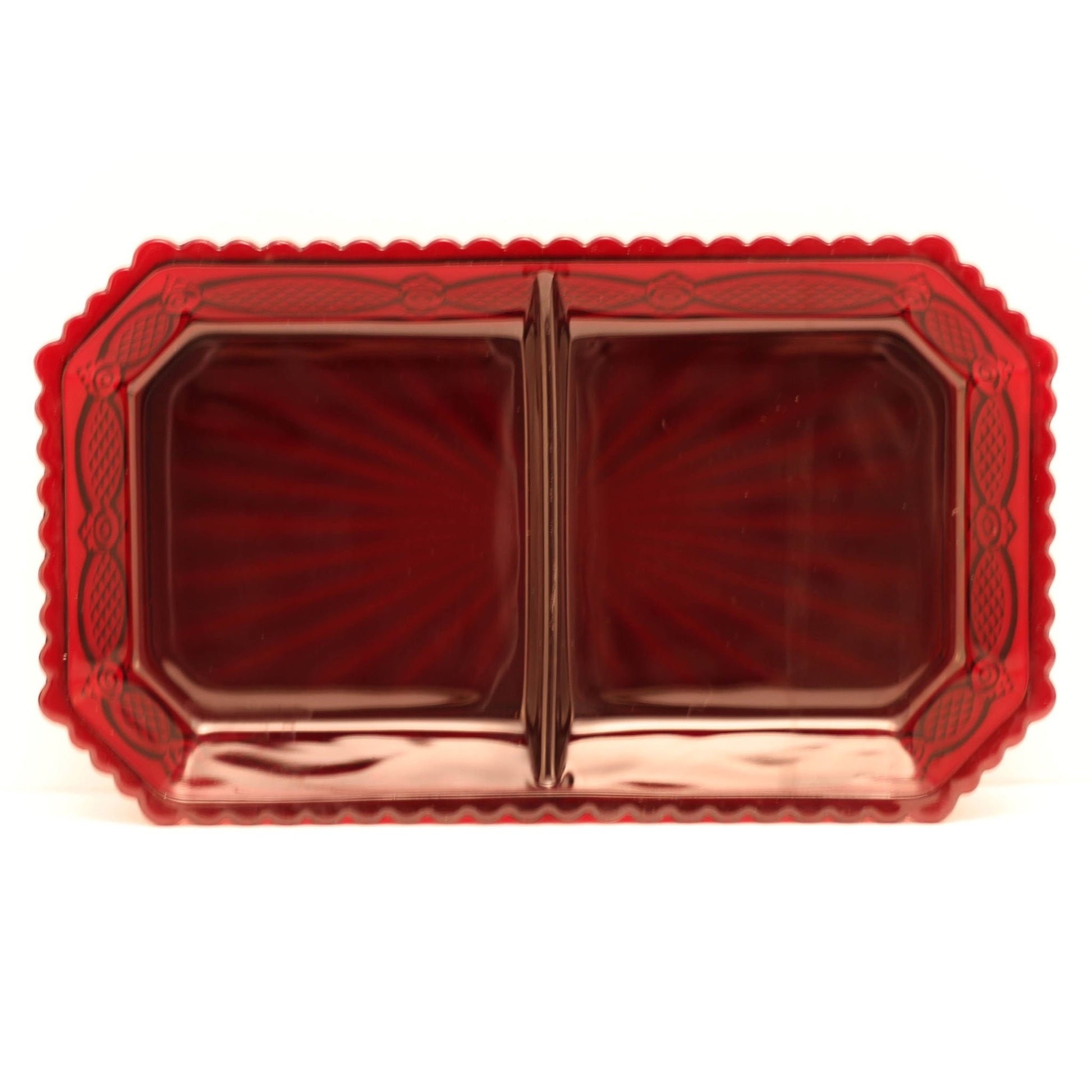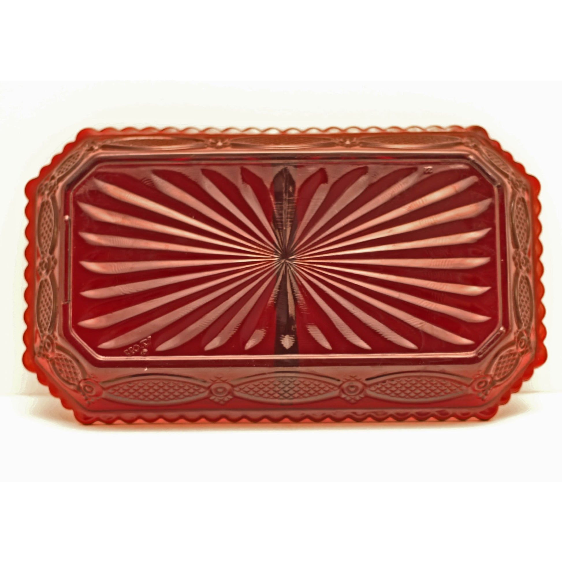 Featuring a TWO-PART RELISH DISH from the 1876 CAPE COD COLLECTION by Avon. The collection is reminiscent of early American pressed glass called “Sandwich Glass” that featured lacy, intricate designs, fine background stippling, and exquisite brilliance which reflected the superb craftsmanship of its makers.