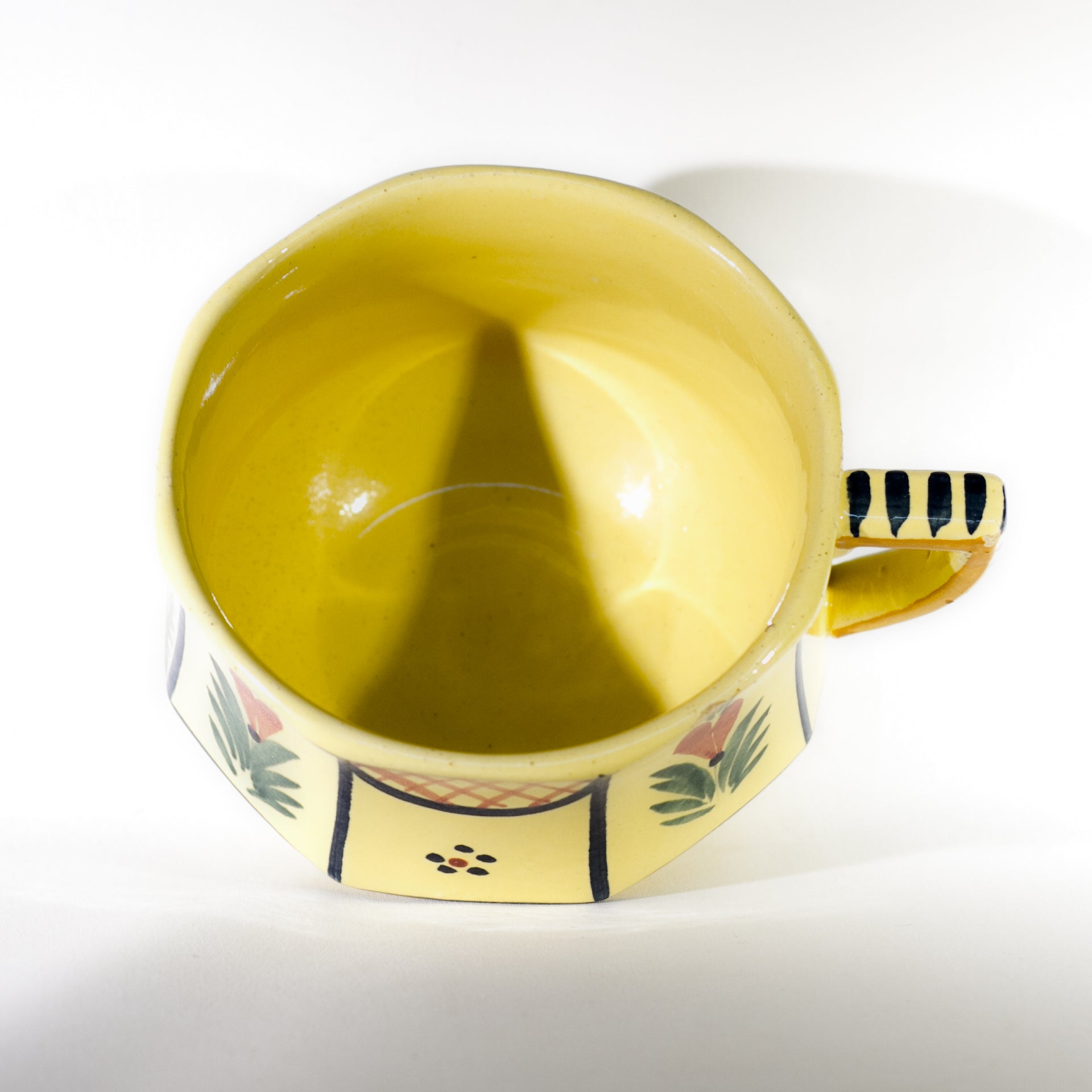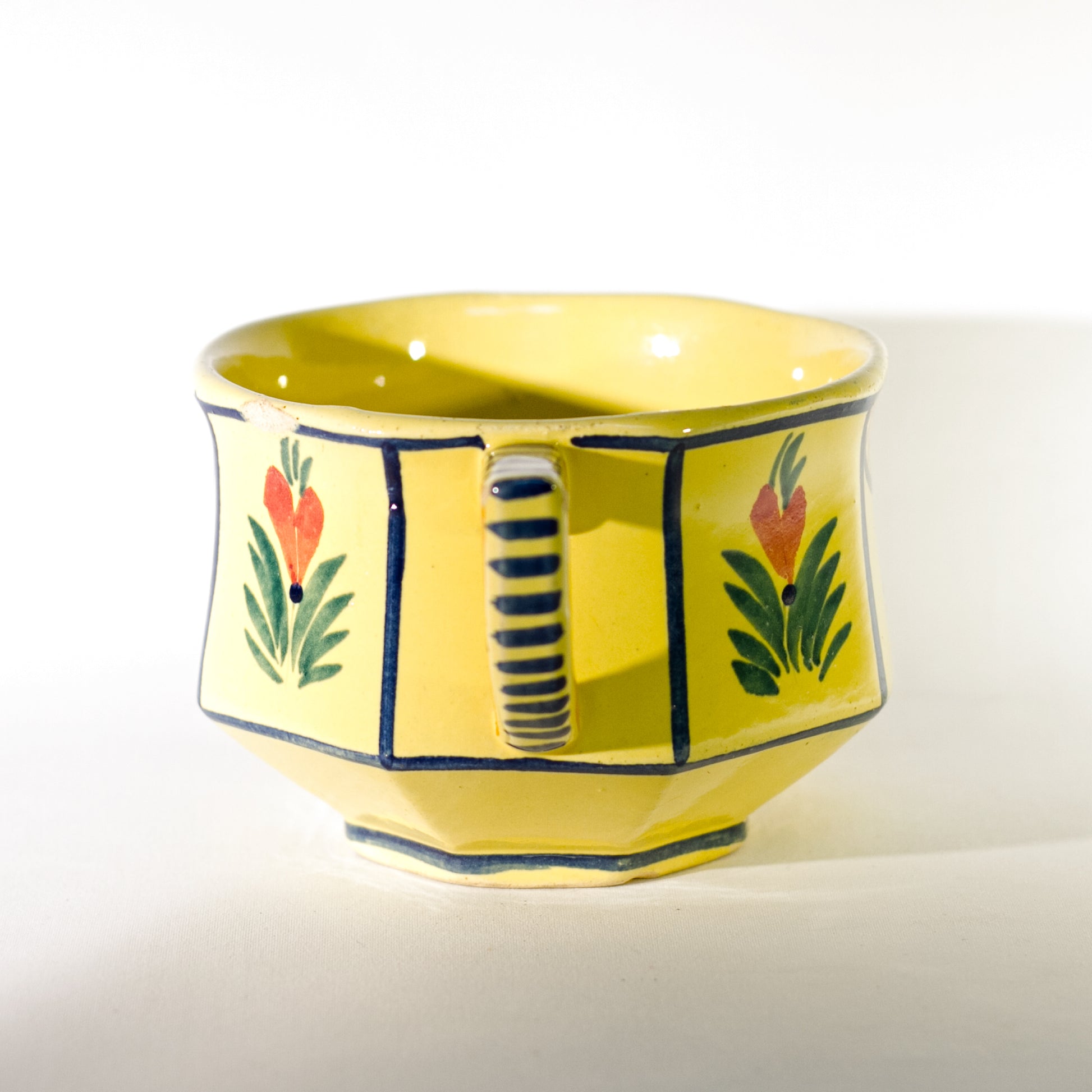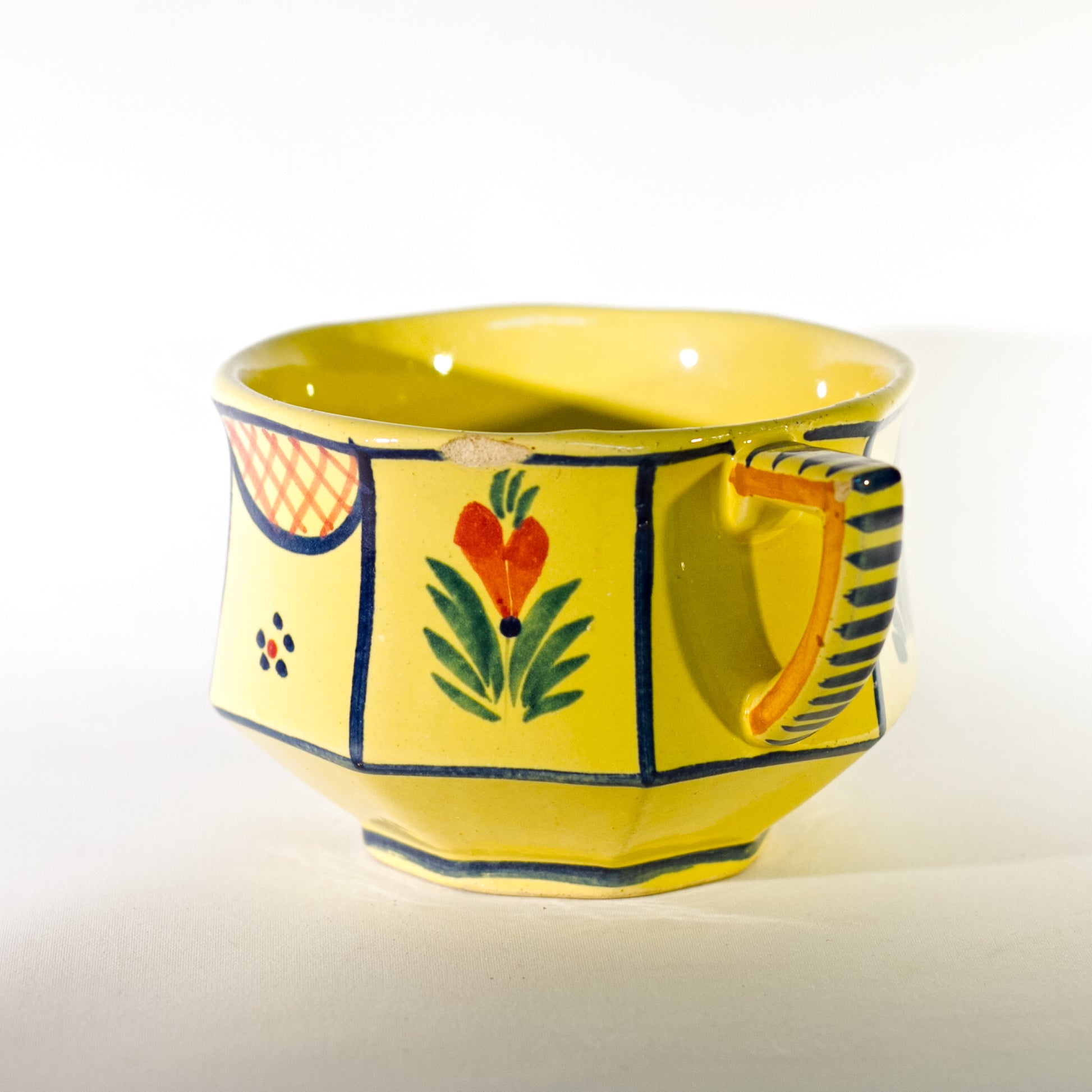 French Faïence HB QUIMPER OCTAGONAL Hand Painted FLAT CUP Circa 1940 - 1960
