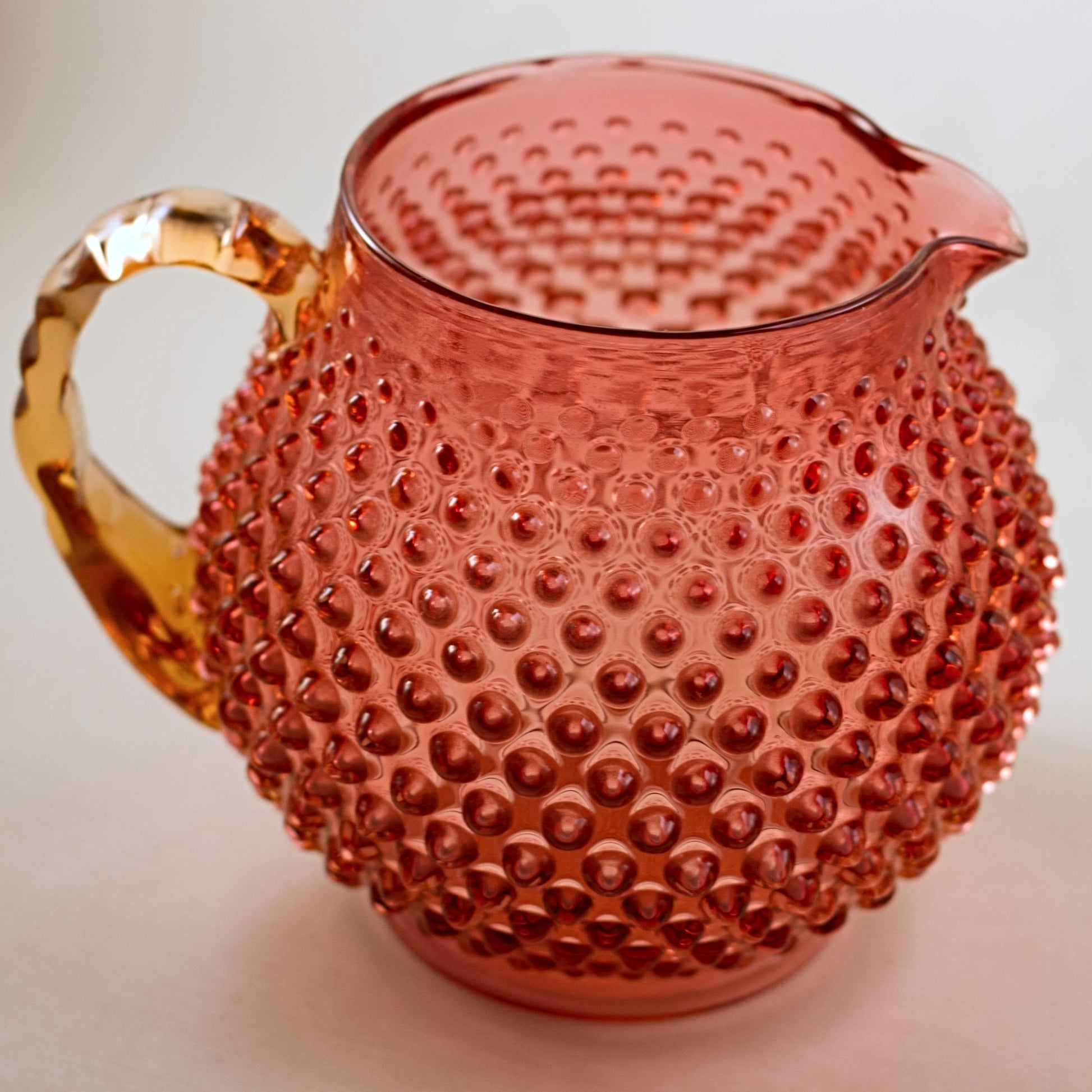 FENTON CRANBERRY GLASS Hobnail Squat Jug with Amber Glass Crimped Handle