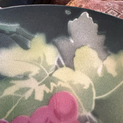 This antique K & G Lunéville French faience plate from circa 1900, featuring hand-painted grapes on a green background, is a wonderful addition to any collection. The piece is signed by Obert and measures 8 ½” in diameter.