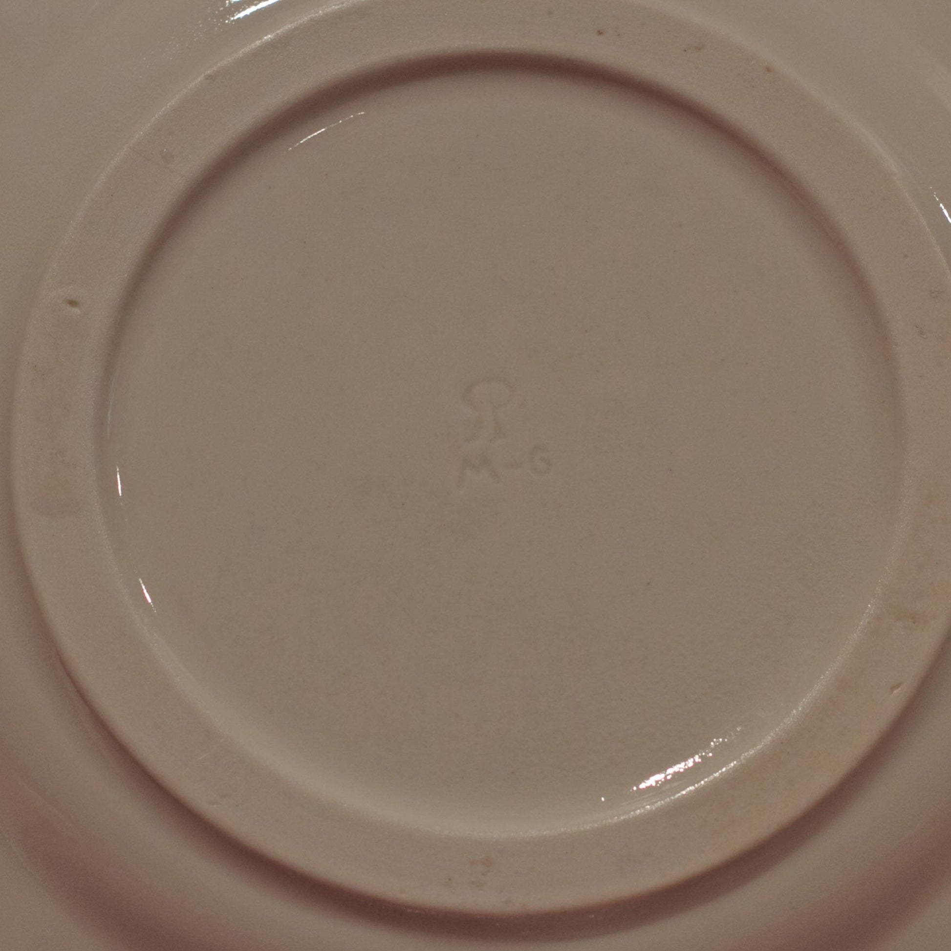 In addition to the monogram mark, the plate is impressed with the pattern number -- M6. The plate is in fantastic condition, with no chips or cracks and would a great addition to someone's art pottery collection, and especially for someone who loves Rookwood Pottery.
