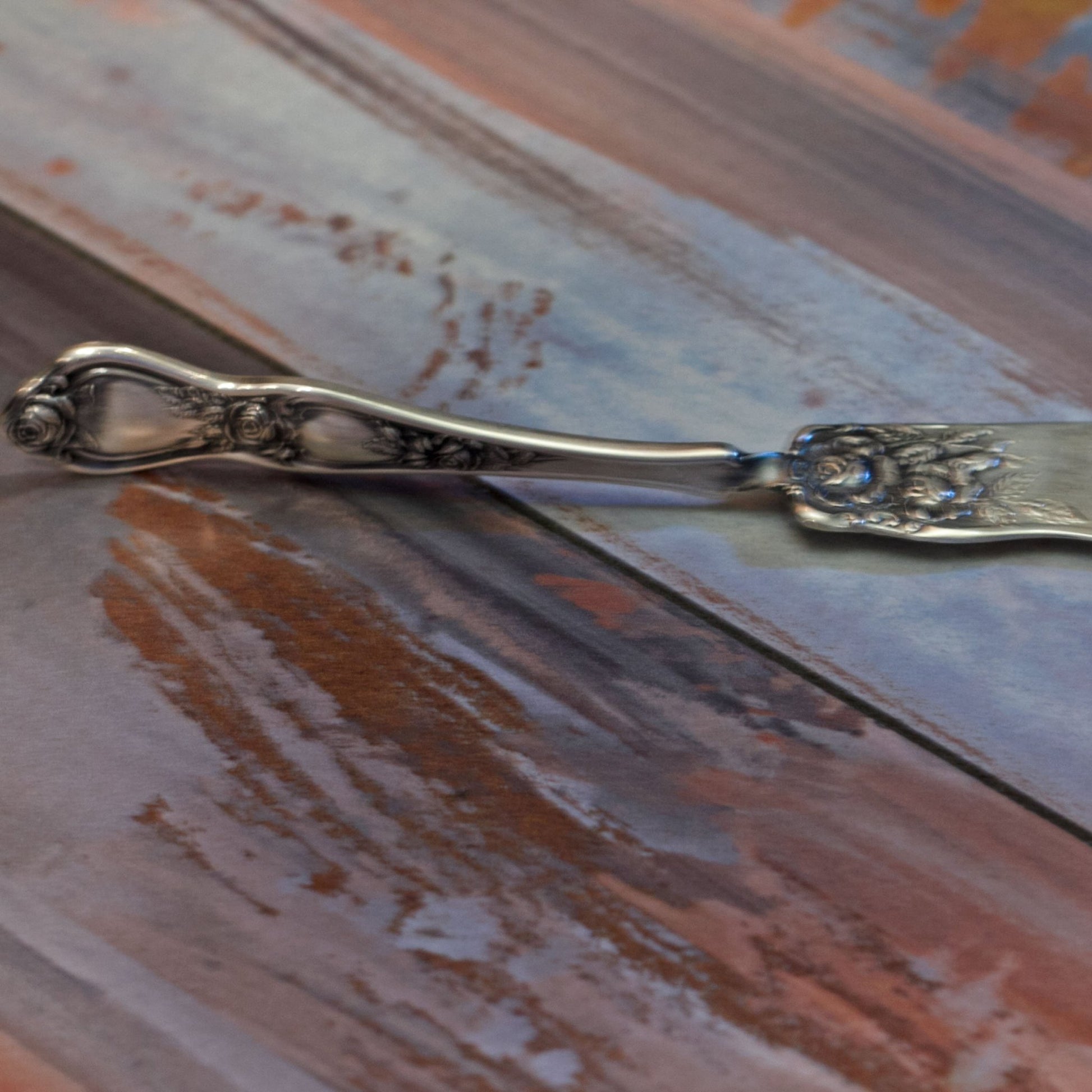 SILVERPLATE FLAT BUTTER KNIFE in Rogers Cutlery Art Nouveau Rose Pattern