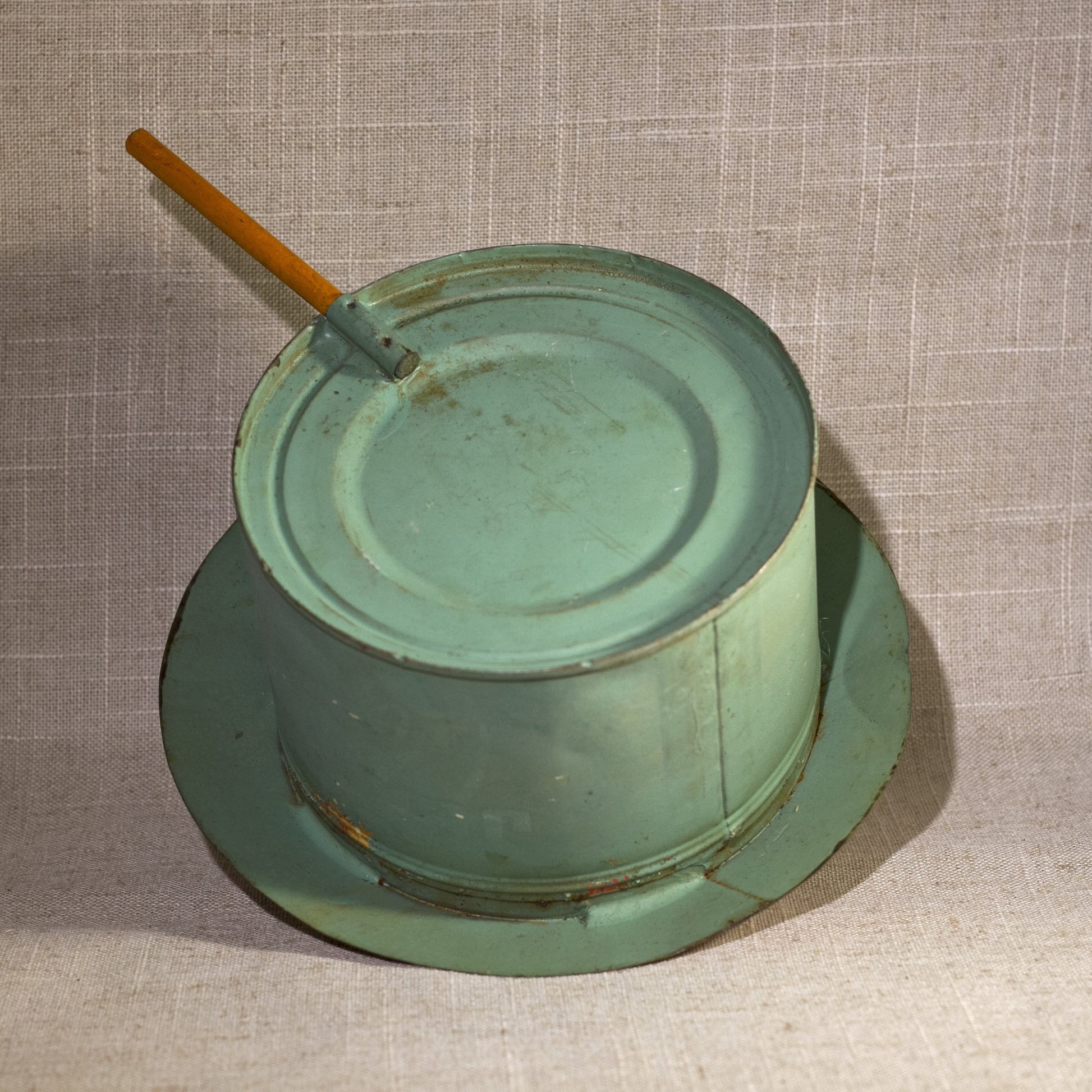 Note: One of the images is a photo of an old Steamboat Coffee Can. The Steamboat Coffee Can photo is for references purposes only so you have an idea what is under the green paint and is not included as part of the sale
