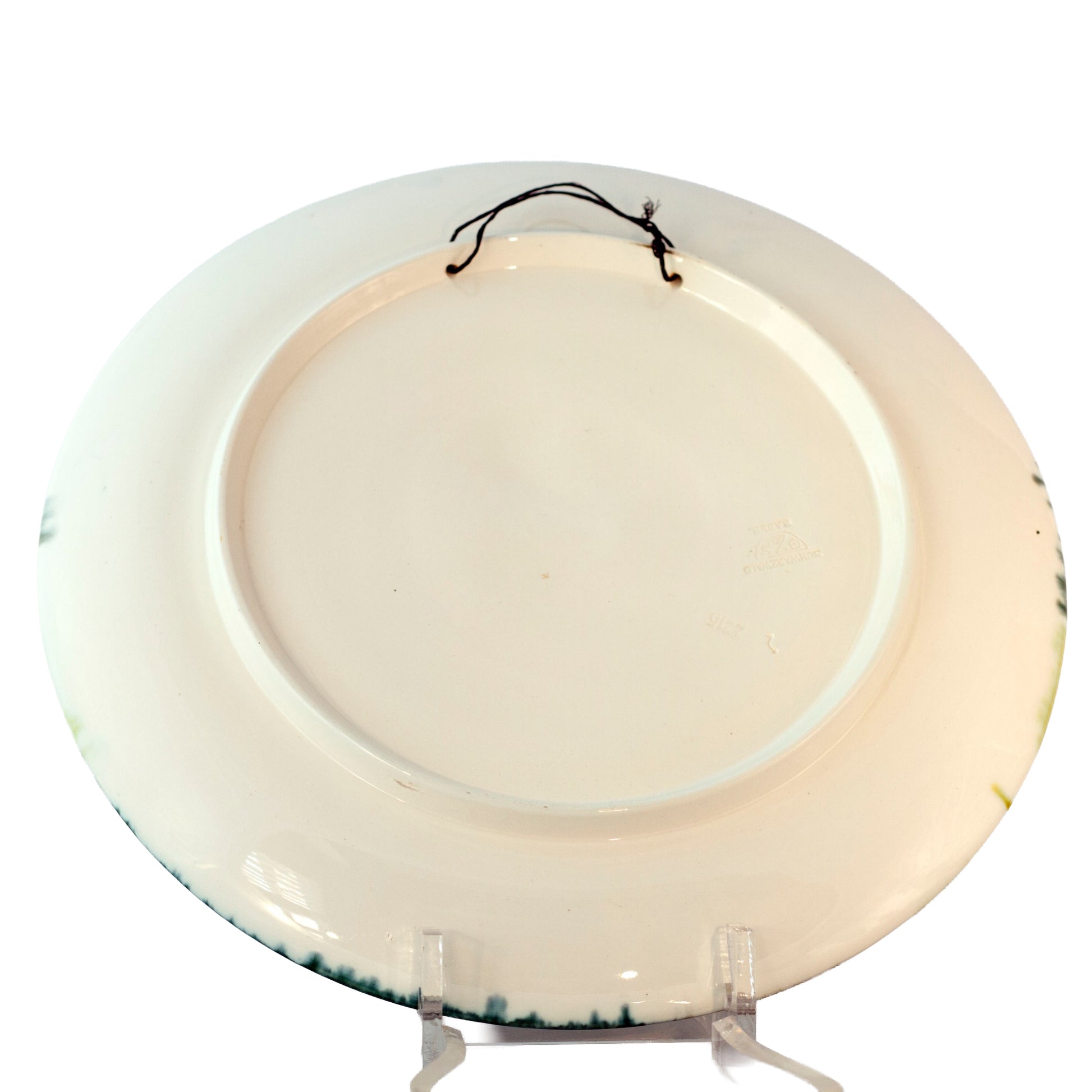The reverse is stamped Made in Western Germany, dating the piece to post-1949, with most examples like this produced during the 1950s West German ceramic revival. The back also shows impressed number 2215, the Schwarzwald Baden mark, and two factory holes for easy wall hanging. At 13" in diameter, it makes a striking display piece for a kitchen, cabin, chalet, or vintage European décor collection.